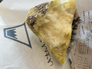 中のパンはふわふわもっちり!粉砂糖とココアパウダーで富士山感を表現。