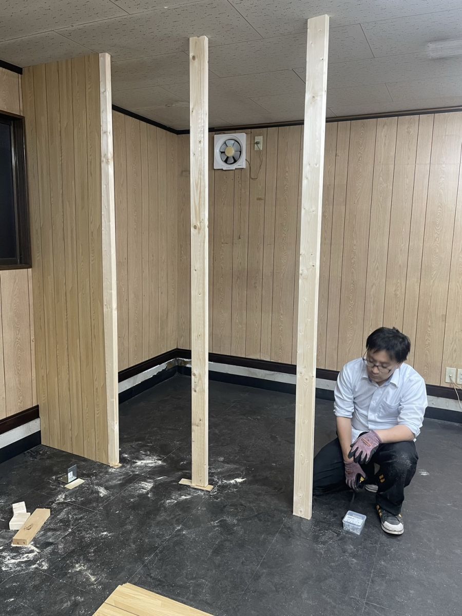 この場合は事務所スペースを作るために壁を拵えているところでございます。