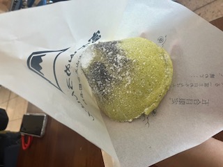 中のパンはふわふわもっちり!粉砂糖とココアパウダーで富士山感を表現。