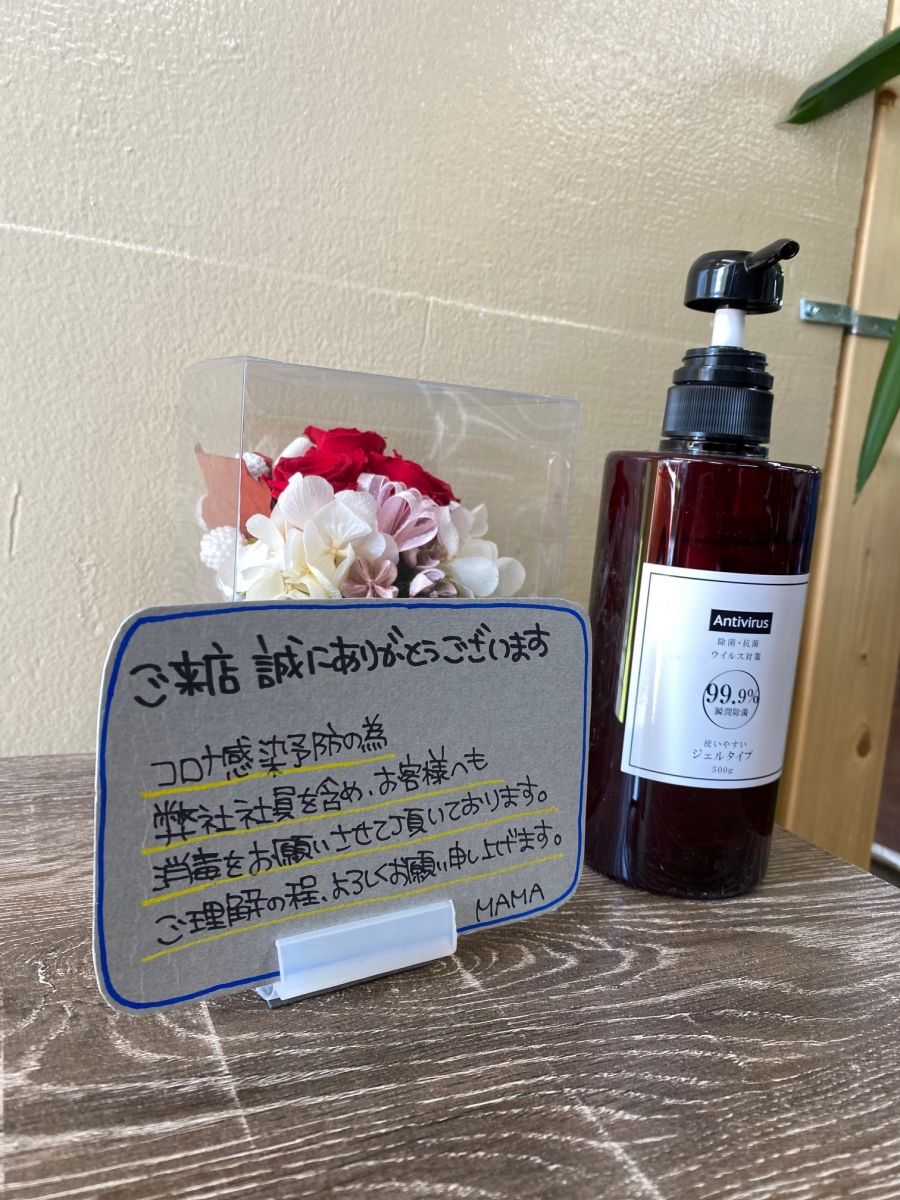 お客様とスタッフ共にアルコールゲルによる手の消毒!