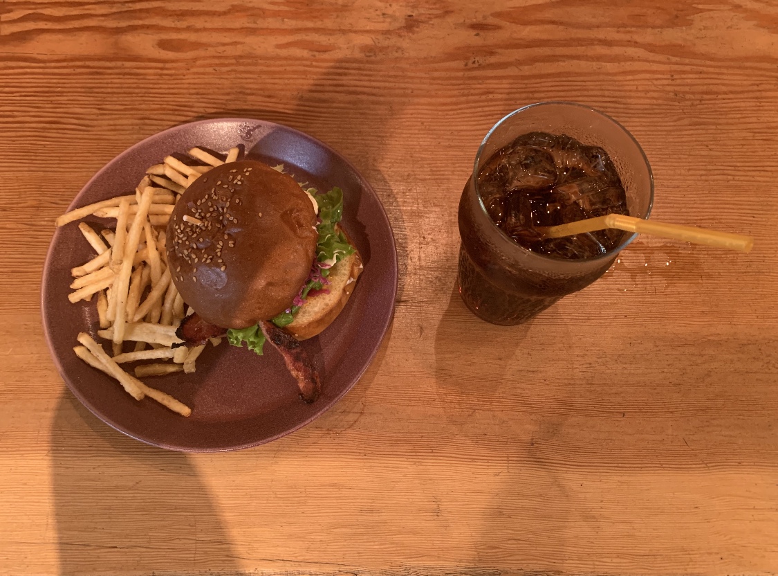 2020.09.29 美味♪ カテゴリー: 先日、友人と江の島の方へ ドライブに行きました! 着く途中でお腹が空いたので 寄り道をして ハンバーガーを食べに行きました! 藤沢にある 8LUNGEというお店へ!! 写真の撮り方は下手くそでが。。。 とってもボリュームがあり 美味しかったです ぜひ行ってみて下さい♪